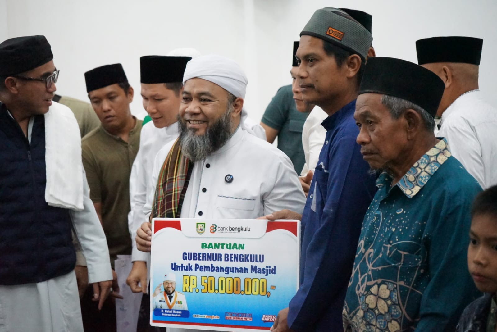 Dalam kesempatan tersebut, Gubernur Helmi Hasan menyalurkan berbagai bantuan untuk masyarakat, salah satunya bantuan pembangunan Masjid Muamalah Desa Tangsi Baru sebagai bentuk dukungan terhadap penguatan sarana ibadah dan kegiatan keagamaan warga.